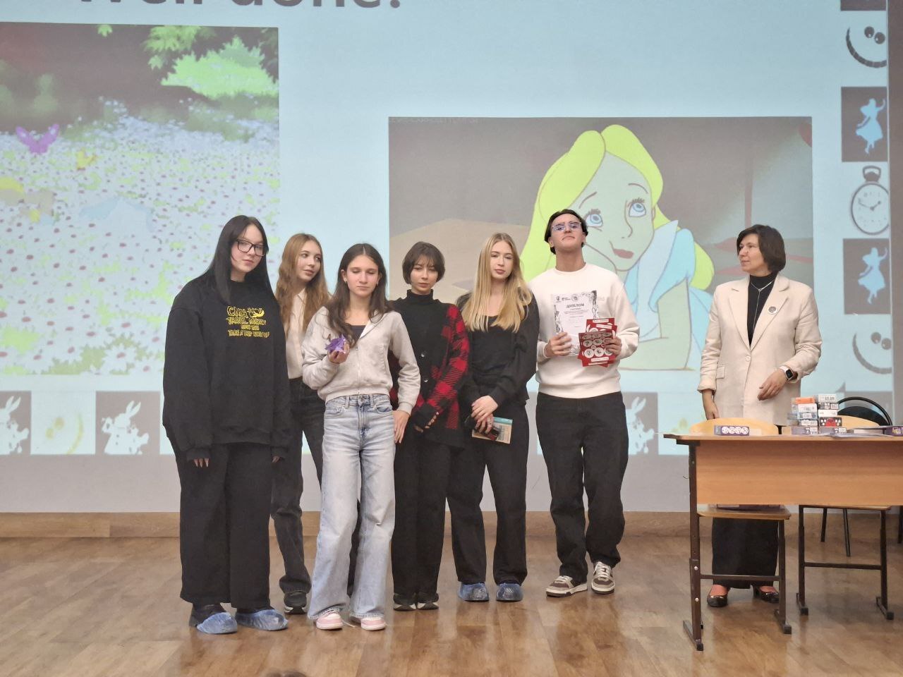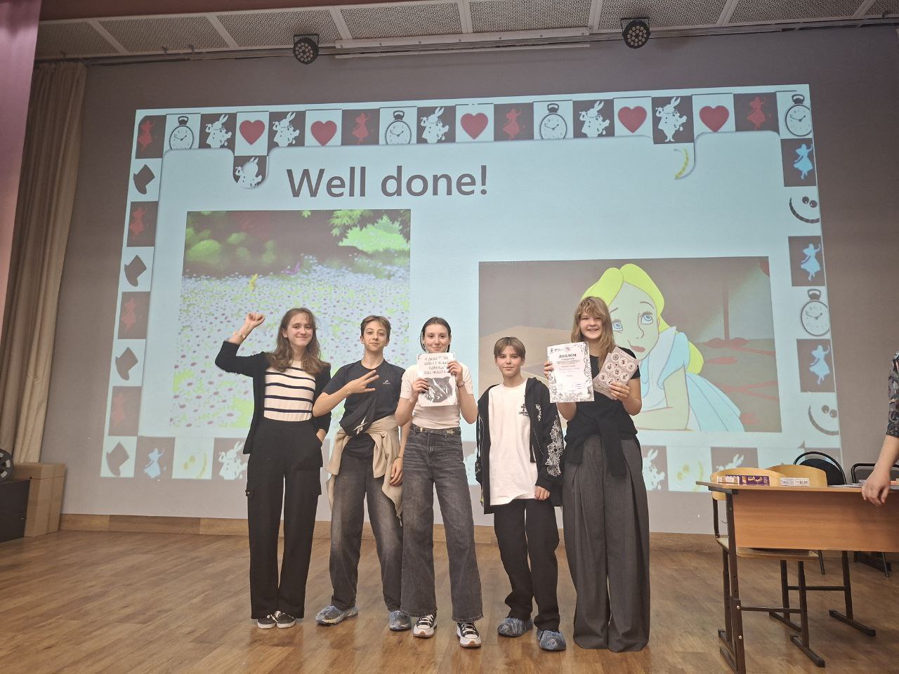 Команда 7 класса «Образовательного центра «Рост» под руководством педагога Натальи Алексеевны Гуляевой одержала блестящую победу, заняв первое место в городской интеллектуальной игре «Алиса в Стране Чудес».